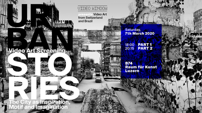 VIDEO WINDOW presents at B74 Art Space in Lucerne the programme URBAN STORIES the second time publicly after the premiere at Art Space Walcheturm in Zurich. The international programme brings together 33 videos from 25 well-known artists. 21 come from Switzerland (including many from Zurich) and four from Brazil. In contrast, almost all the videos are set far from Switzerland: in Europe, the USA, Brazil, South Africa, India or China.