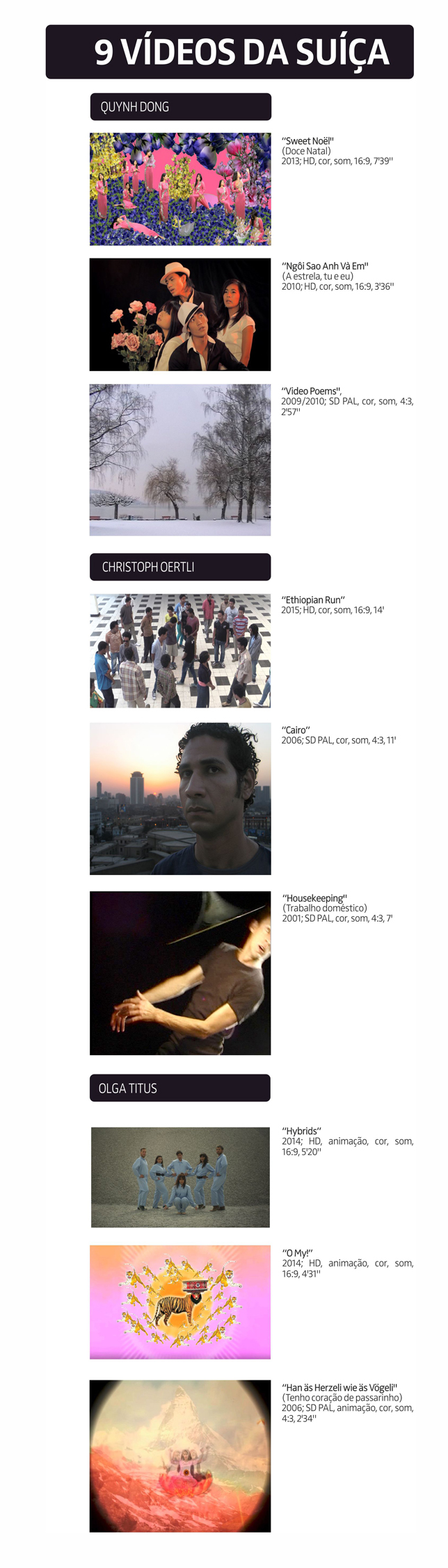 18.45 Three videos each by Quynh Dong, Zurich; Christoph Oertli, Basel / Brussels; Olga Titus, Winterthur -
